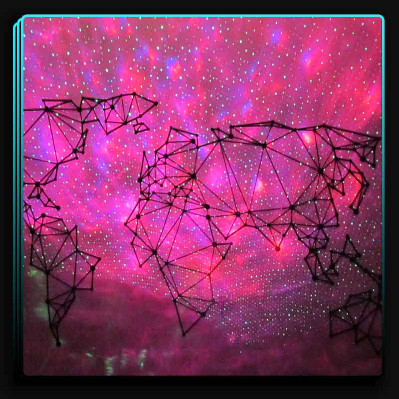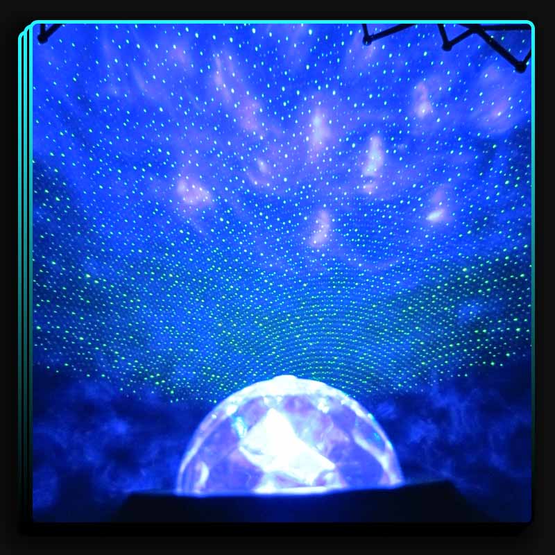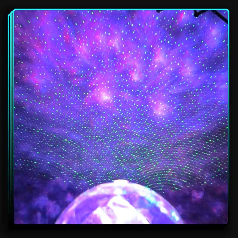 در اولین بخش، به اسم این محصول اشاره خواهیم کرد. کلمه کهکشانی، شاید همه فکر کنند این کلمه فقط برای تبلیغات استفاده میشود، ولی همانطور که در عکس و ویدیو قابل مشاهده است، مدل طرح این محصول سبک کهکشانی جذابی دارد. علاوه بر آن میتوانید بخش لیزری رقص نور موزیکال کهکشانی ما را روشن کنید تا مانند تصاویر، لیزر های سبز روی ترکیب نور های جذاب ما روشن شود.
