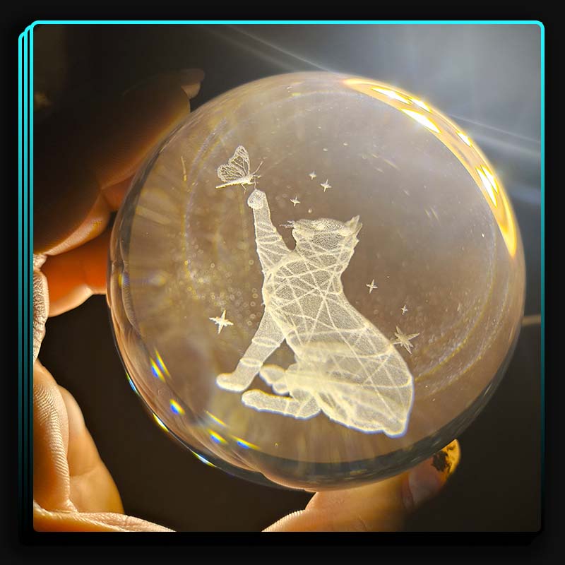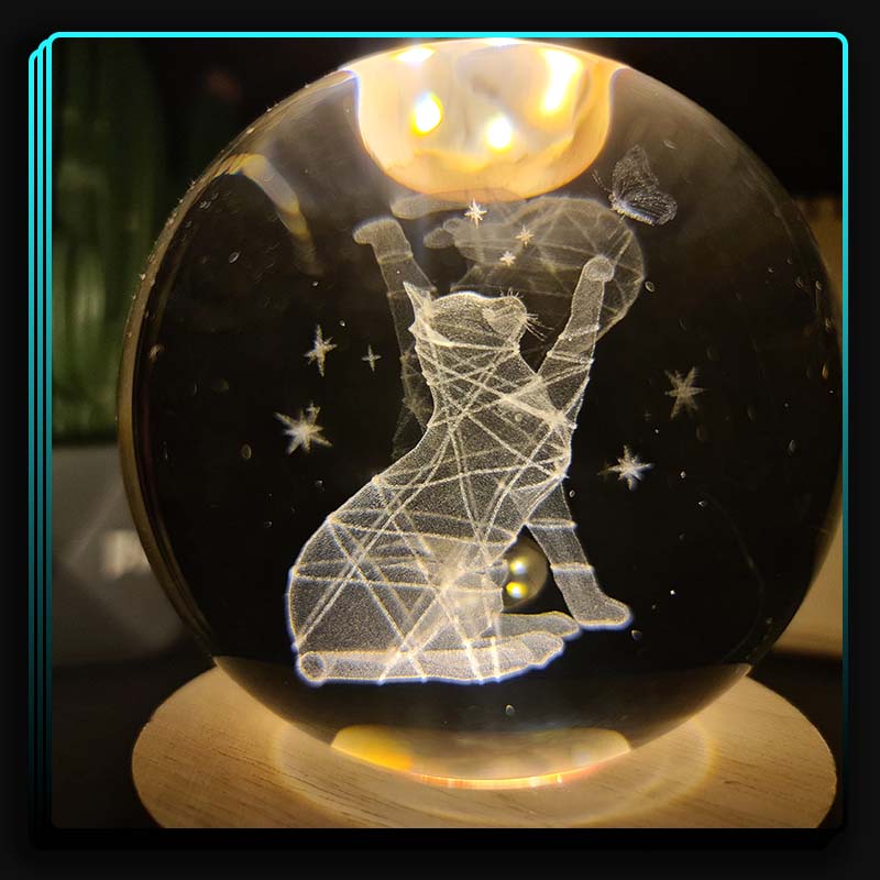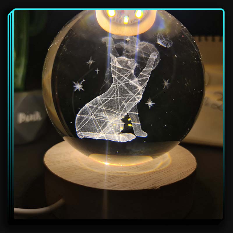 گوی کریستالی و چراغ خواب گربه سایز ۸